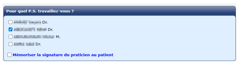 - ou par une secrétaire déclarée comme travaillant pour un praticien de santé.