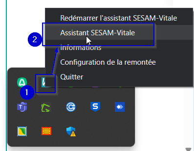 Faites un clic droit sur le logo « VZ » et Sélectionnez « Assistant SESAM-Vitale » :