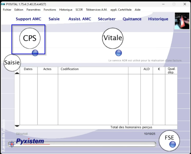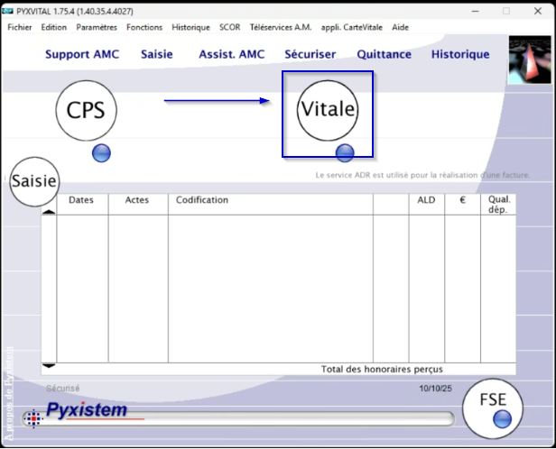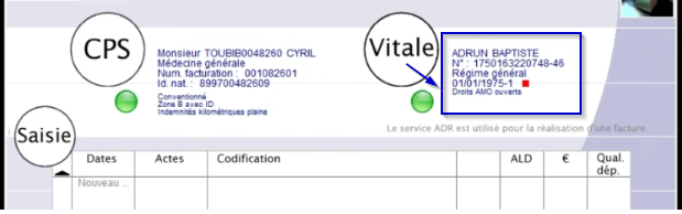 Cliquez sur le rond "Vitale" pour déclencher la lecture de la carte vitale :