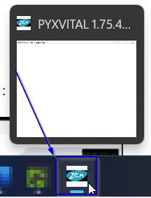 Si la fenêtre n’apparait pas, cliquez sur l’icône Pyxvital qui clignote dans la barre de Windows en bas :