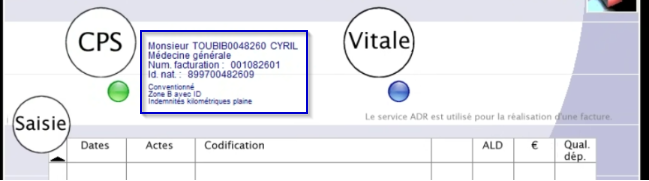 L’identification du patient apparaitra a côté du Rond « Vitale » après quelques secondes (Vérification ADRi) :