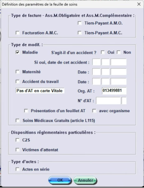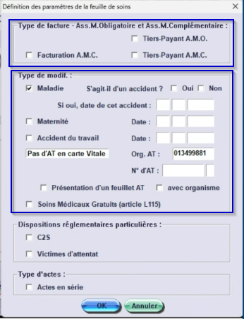 Dans cette fenêtre vous allez pouvoir définir le tier-payant et le Motif de la FSE (Maladie, Maternité, Accident du travail, etc.) :