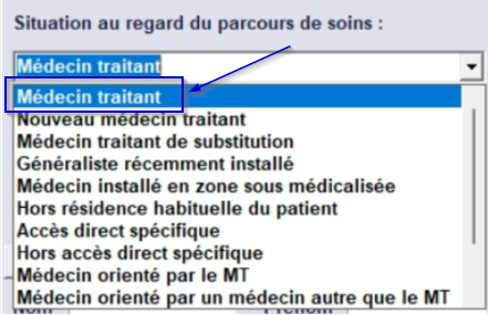 Sélectionnez votre situation, par exemple ici "médecin traitant" :