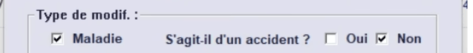 Si vous cochez « Maladie », cochez la case "non" si ce n’est pas un accident du droit commun :