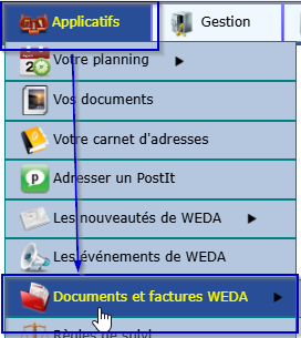 Elles sont accessibles dans votre interface Weda (Menu « Applicatifs » > « Documents & Factures Weda »):