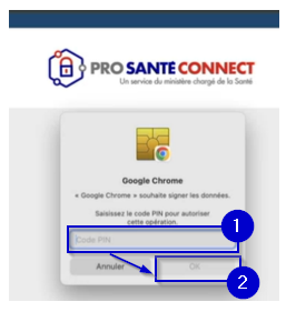 - Une page d'authentification Pro Santé Connect s'ouvre :