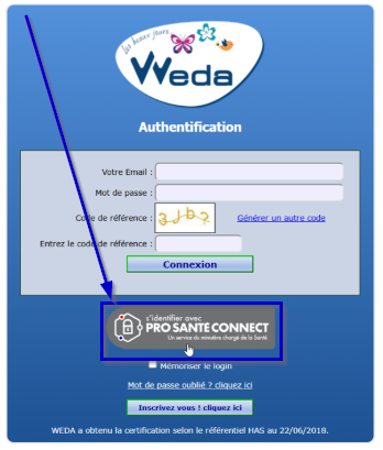 - Vous serez directement connectés à Weda après avoir réussi votre authentification dans Pro Sante Connect.