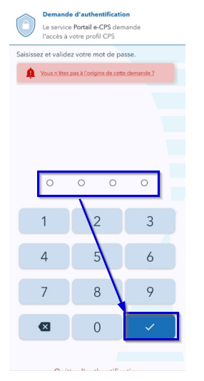 - Une fois saisi, l'application vous affiche une demande d'authentification ;