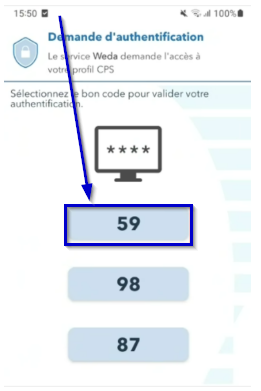 - Cliquez sur le code identique à la première fenêtre d'authentification :