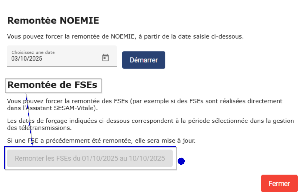 et cliquez sur le bouton (1) "Remonter les FSE du..." :