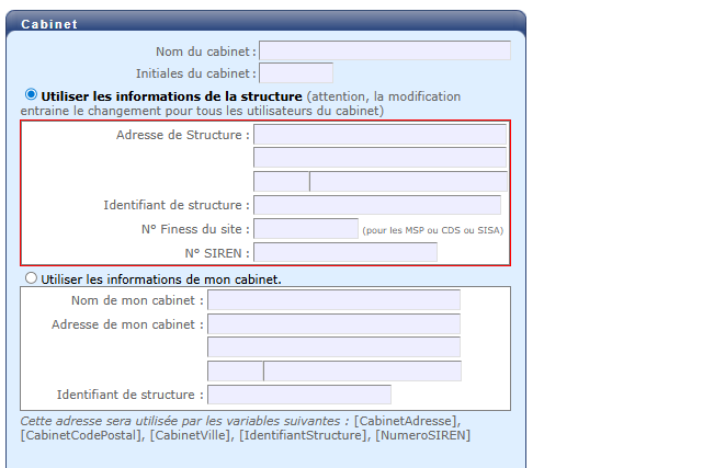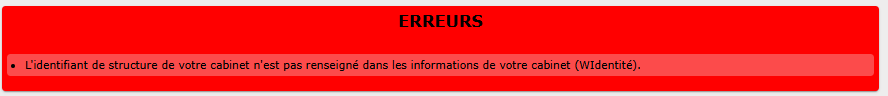 Je rencontre l'erreur "L'identifiant de structure n'est pas renseigné dans les informations de votre cabinet (WIdentité)." Que faire ?