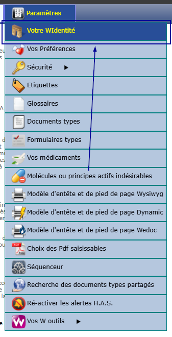 Cliquez sur "Paramètres" puis "Votre WIdentité" :