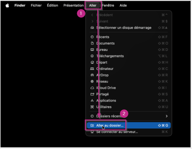 Cliquez sur "Aller" puis "Aller au dossier" :