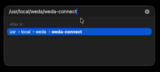 Dans l'encart qui s'affiche, copier le chemin suivant : /usr/local/weda/weda-connect