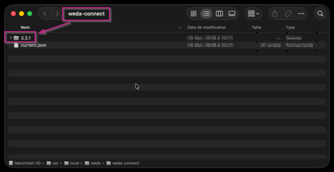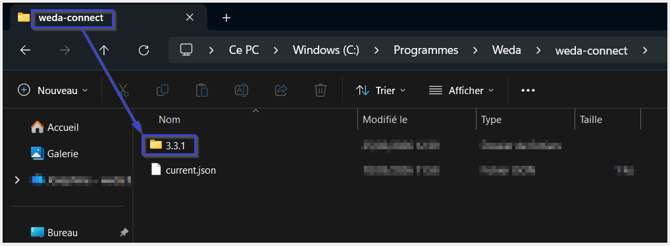 - Le dossier qui s'affiche vous indique la version de WedaConnect installée sur votre ordinateur :