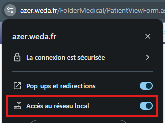 🚨Il pourra aussi s'avérer nécessaire de vérifier les autorisations d'accès au réseau local du navigateur comme sous Chrome :